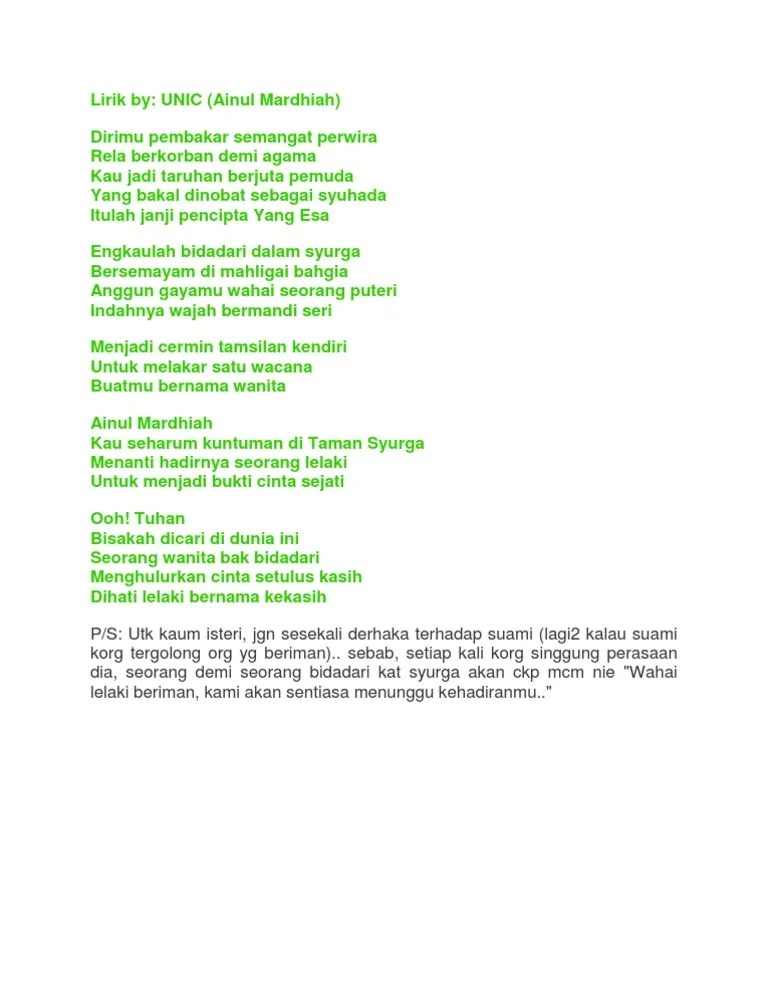 Klik sini untuk pembelian (rm65). Ainul mardhiah unic lirik semoga anda semua terhibur dengan lirik lagu ini skopisdta. Ainul mardhiah unic song lyrics and music by unic arranged by dannyvoic3 on smule social singing. Hana ngoen bandeng di dalam donya. Halaman ini semuanya berisi daftar list chord nasyid yang ada di blog ini. Ainul mardhiah lirik chord chord walls. Unic ainul mardhiah 2017 song lyrics and music by unic arranged by amirhasif on smule social.
